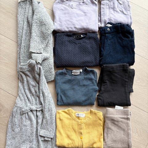 Name it, Reflex, primark, barneklær i størrelse 98 for jente, flerfarget. Inneholder ulike plagg med forskjellige mønstre og farger.