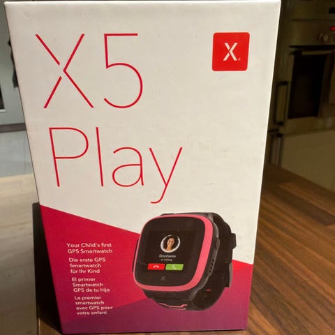 Xplora X5 Play smartklokke i svart farge. Klokken har GPS-sporing, samtale- og meldingsfunksjoner, og er designet for barn. Den har et slitesterkt design og justerbar reim.