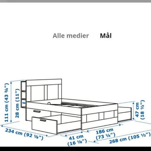 Praktisk seng, litt kortere enn vanlig. Passer supert på gjeste- eller barnerom.