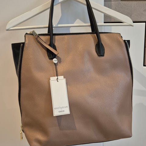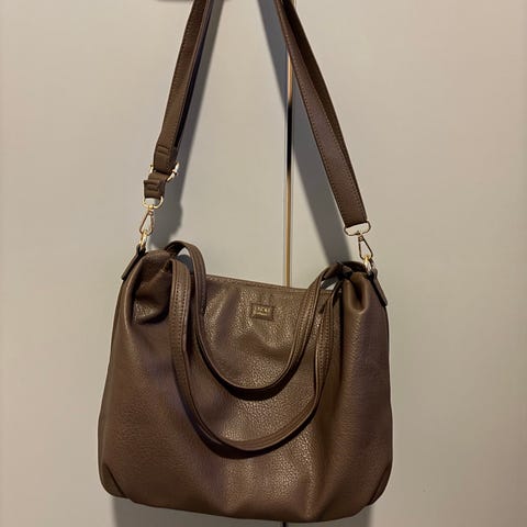 Dame brun ryggsekk som kan brukes som veske, har mange lommer