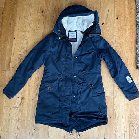 Veldig pent brukt unntatt kragen på jakken hvor noen tråder har blitt dratt litt ut (se bilder).