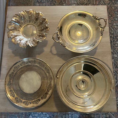 Diverse deler fra Eik sølvplett Grethe, Birgit, Ridder, Mette og Anneog Ridder