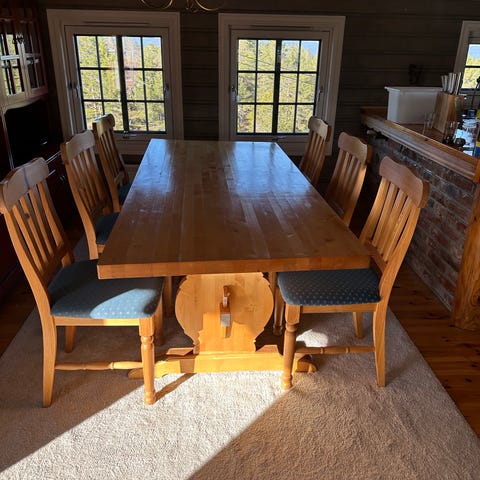 Møblene er pent brukt og i god stand, med normale bruksspor. Passer godt til kjøkken eller spisestue i klassisk eller landlig stil.