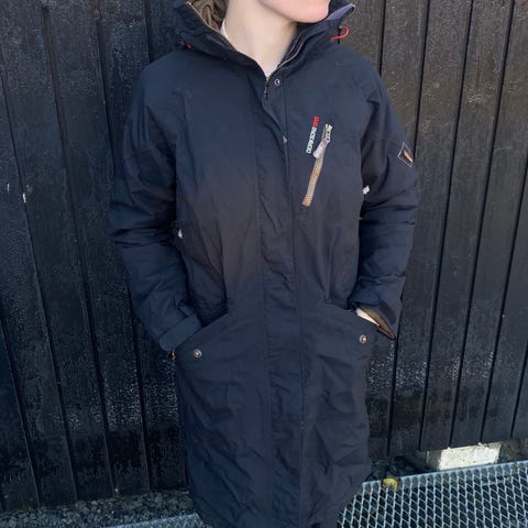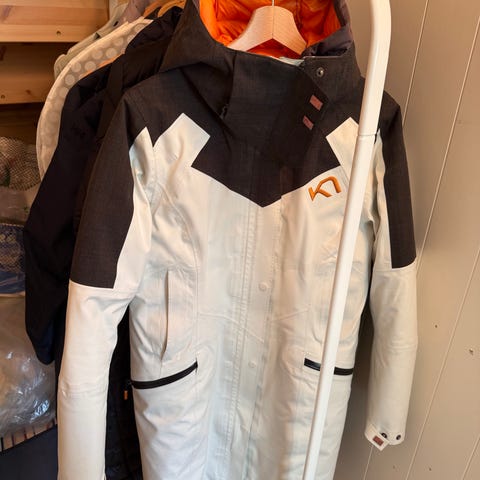 Kari Traa Annet yttertøy for dame i størrelse S. Jakken er grå og laget med dun som isolasjonsmateriale. Den har hette med pelskant og foret innside for ekstra varme. Passer til bruk i kaldt vær.