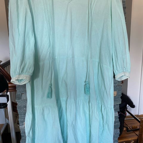 Turkis kjole fra vero moda. Str 38, aldri brukt. Noen merker (ser ut som nålestikk) bak, se bilder.