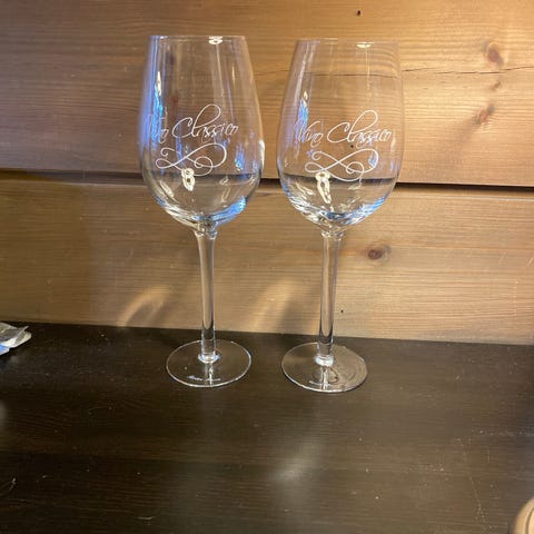 2 stykk stettglass til bryllup med påskriften «wedding day». Aldri blitt brukt, trenger bare en vask