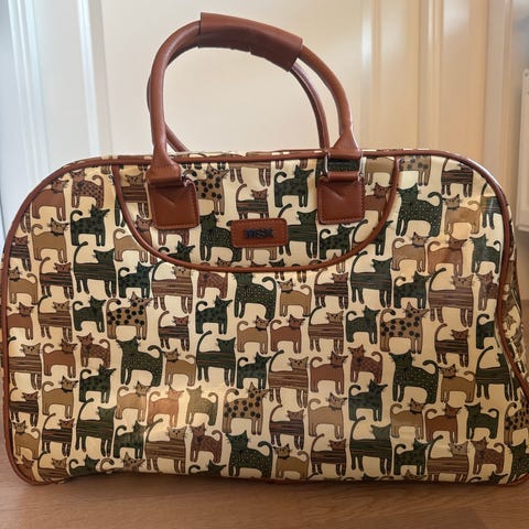 Fin trillekoffert i sterke farger selges.
