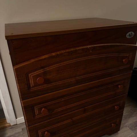 Stort og praktisk stellebord med forhøyede kanter som beskytter babyen mot å rulle av. God oppbevaringsplass med store kurver til klær og bleier, samt mindre kurver på siden, perfekt til for eksempel våtservietter og småting.
