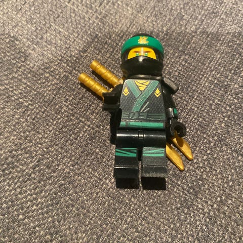 LEGO NINJAGO minifigur med gyllen drakt og tilbehør. Figuren har detaljerte trykk og inkluderer et sverd. Egnet for samling eller lek innen LEGO NINJAGO-temaet.