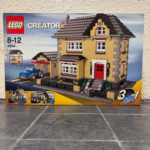 LEGO Creator modulbyggesett bybygg med detaljerte fasader og interiør. Inkluderer flere etasjer, trapper, vinduer, dører, og tilbehør som minifigurer og møbler. Passer for bygging og samling.