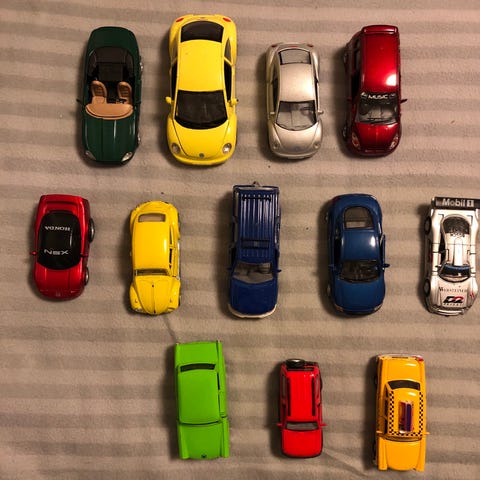 19 stk lekebiler i metal selges samlet. Ukent årstal.