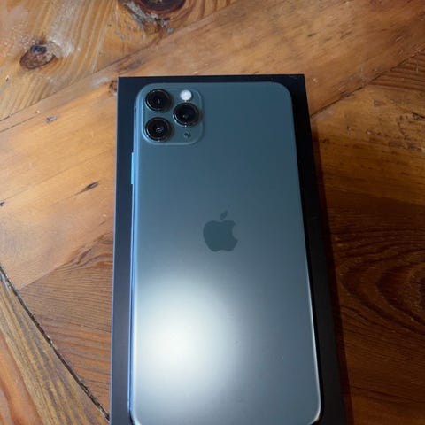 Jeg selger en iPhone 11 Pro Max. Jeg har hatt telefonen siden den var ny, og den har aldri blitt skadet. Jeg har en ny skjermbeskytter i herdet glass og to deksler. Telefonen har alltid blitt brukt med en skjermbeskytter i herdet glass og et deksel