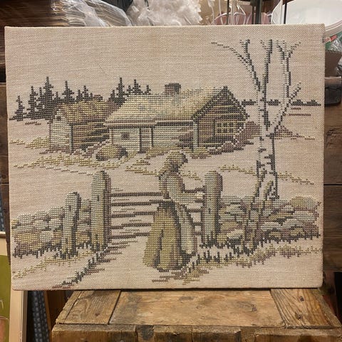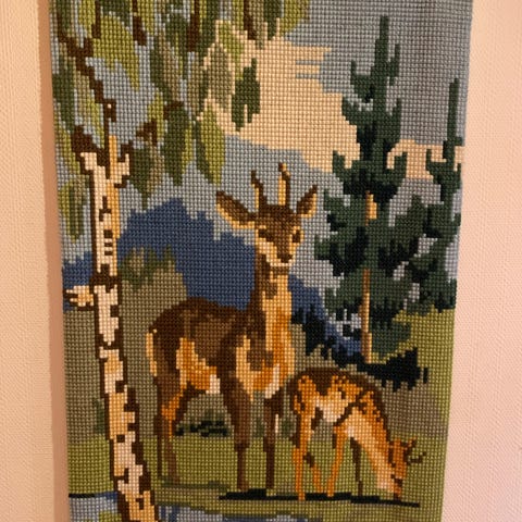 Broderi som aldri er blitt gjort ferdig som veggpynt.