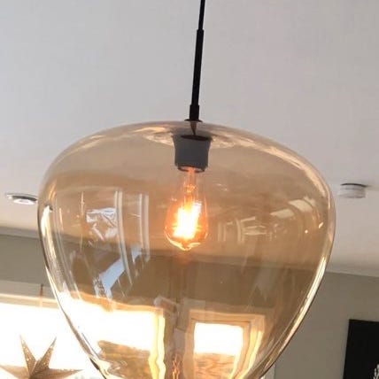 Ellos taklampe med glasskuppel i en rund form. Lampen er designet for takmontering og har en transparent, brunlig glasskuppel som gir et dempet lys. Passer for bruk i ulike rom som stue, kjøkken eller gang.