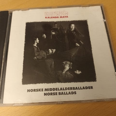 Kalenda Maya Norske middelalderballader kassett. Inneholder norske middelalderballader med teksthefte. Kassettens omslag viser svart-hvitt bilde av gruppen. Pen kassett som spiller fint.
