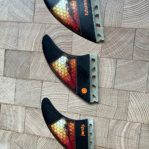 Selger ikke komplett finnesett der en bak-finne mangler. Kan surfes som twin. Kan sendes. Kom med bud:)