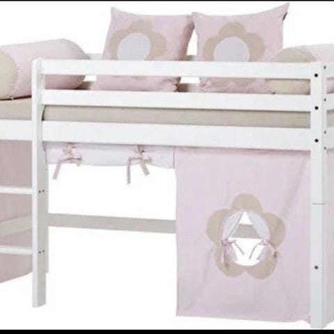 Veldig fin køyeseng, inkl. stege & sengehest. Går fint at bruke den som to senger også. Madrasser tilkommer x2. Forvaringslåda under sengen kan fås med.