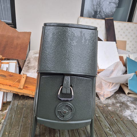 Ovn av ukjent alder, men i god tilstand. Steiner inni ovnen er hele.