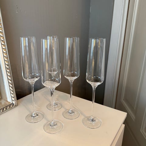 Pene glass til feks champagne eller hvitvin - seks stk, 100 per glass eller 500 samlet. Høyde 26 cm.