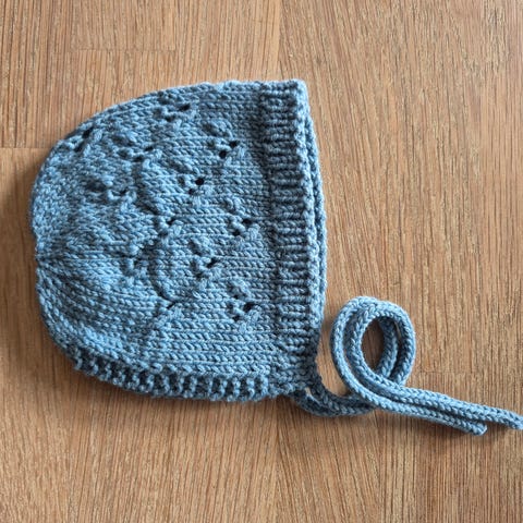 Strikket Karens kyse / lue str 18-24m, som ny. 100% merinoull. Sender om kjøper dekker porto - 69kr (pakke med sporing ) Røykfritt hjem.