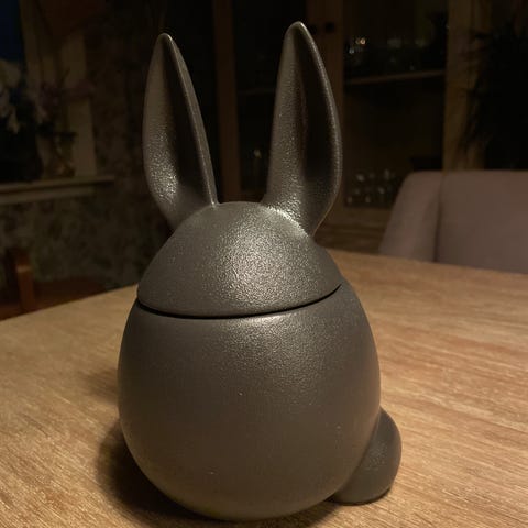 Ønsker å kjøpe Dbkd sin Eating rabbit krukke med lokk i fargen Dust. Høyde 20 cm. Betaler frakt.