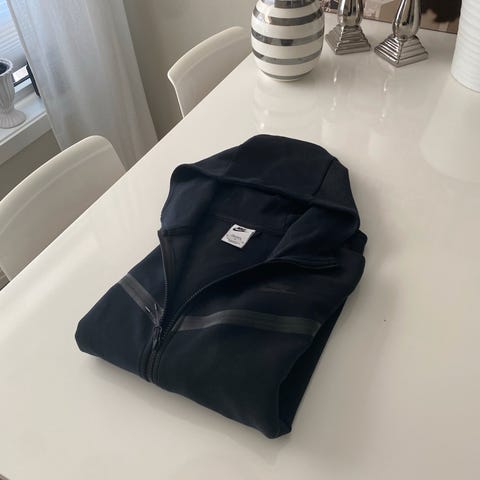 Nike Andre hettejakke og bukse i beige farge, laget av bomull. Passer for herre i størrelse M. Settet består av en hettejakke med glidelås og matchende bukse, egnet for utendørs bruk.