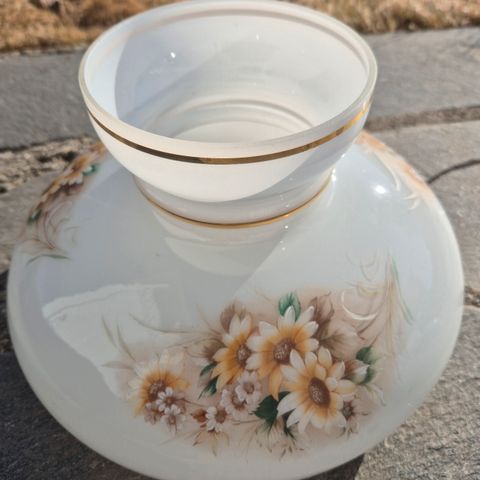Vintage lyskuppel i glass med sokkel/base i porselen.
