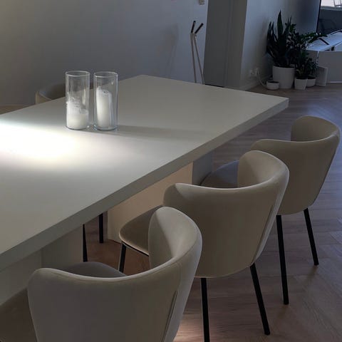 Seks stykk KA design spisestue stoler selges. Veldig gode og behagelige å sitte i, god pute og padling i rygg.