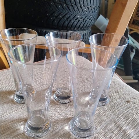 Pene glass høyde 22 cm. Kr 100 per stk selges samlet kr 500.