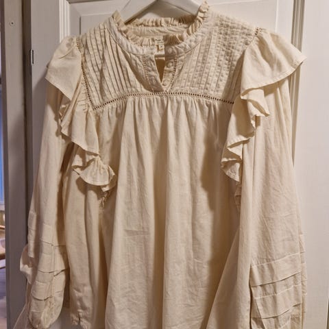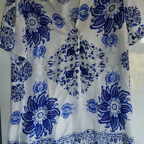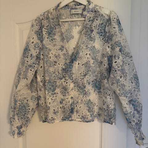 Lett og luftig bluse med nydelig blomsterprint i blå toner. Myk kvalitet og lett oversized passform.