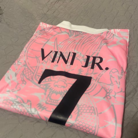 Real Madrid fotballtrøye. Ingen hull eller flekker, men merket bak er litt falmet.