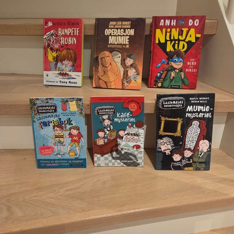 Bokpakke barnebøker inkludert Lasse Majas Detektivbyrå