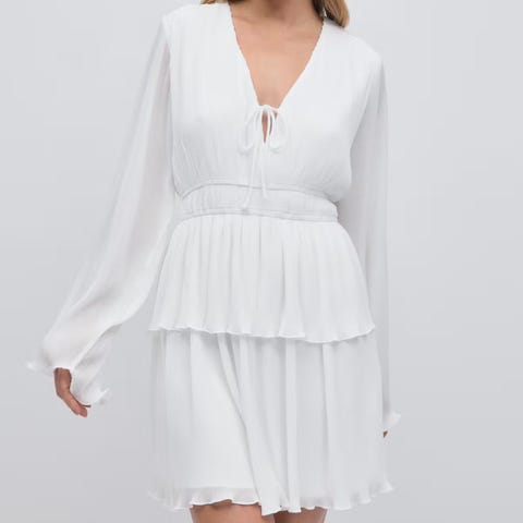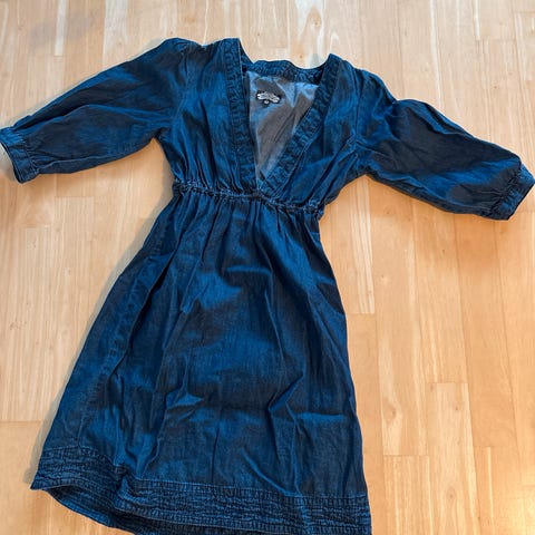 Kjolen har omslagstopp (V-hals), lange ermer og elastisk midje. Lett og luftig stoff, fin modell.