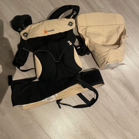 Ergobaby bæresele i grå farge. Designet for komfortabel bæring av barn med justerbare stropper og polstring for støtte. Egnet for daglig bruk og tilpasset ulike bæreposisjoner.