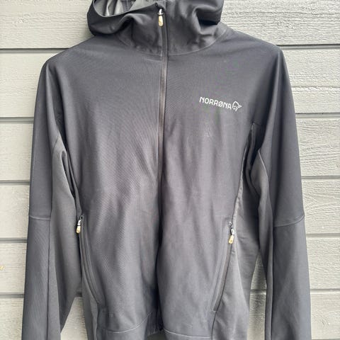 Norrøna jakke i størrelse M, laget med Gore-Tex materiale. Jakken er svart og designet for utendørsbruk.