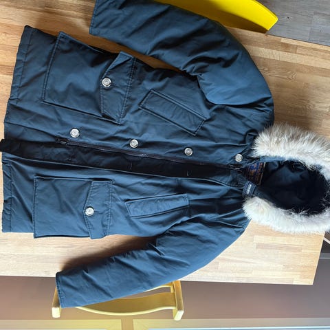 Jakken fremstår som strøken og er bare brukt noen få ganger.