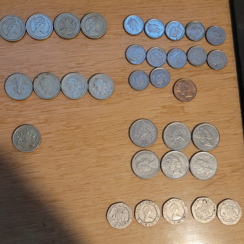 Bank of England En Pund sedler med klassisk design, inkludert portrett av dronning Elizabeth II og tradisjonelle britiske symboler. Sedlene er trykt i grønn tone og benyttes som britisk valuta.