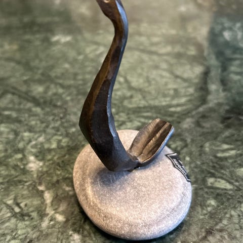 Stående skarv i smijern med messingfarve.