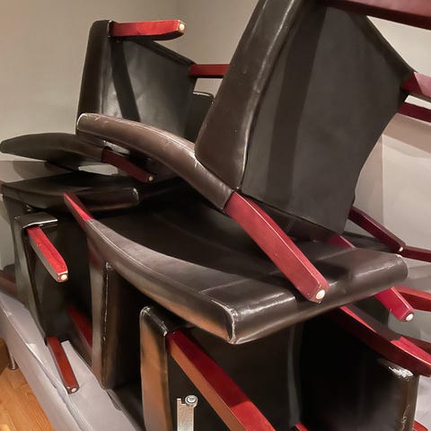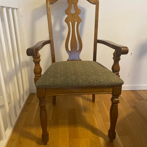 6 spisestue stoler gies bort. Flere merker på trekk/bein. Fungerer helt fint. Billige trekk kan kjøpes på temu og lignende sider. Beina kan pusses og evt males.