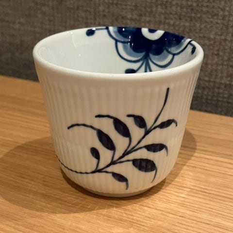 Royal Copenhagen riflet contrast krus med hvit og lilla farge, utgått farge som er blitt et samleobjekt. Laget av porselen med karakteristiske ribbemønster. Passer til servering av varme og kalde drikker.