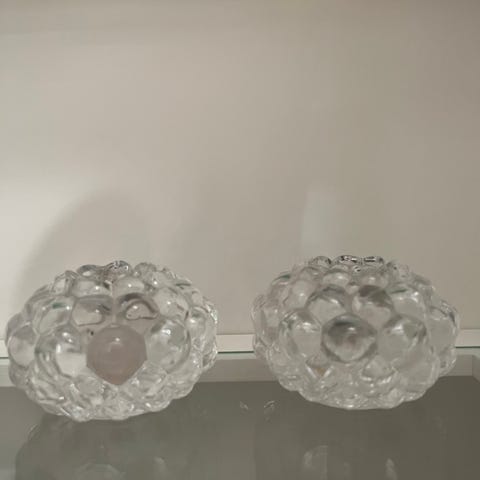 Fra Bohus - to stk telysholder/lyslykt i glass med dekorativt mønster. Passer som dekorasjon og for å holde lys.