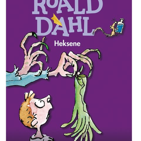 Roald Dahl Heksene barnebok illustrert av Quentin Blake. Boken har lilla omslag med fargerike illustrasjoner. Passer for barn og inneholder historien om hekser og deres kamp mot barn.