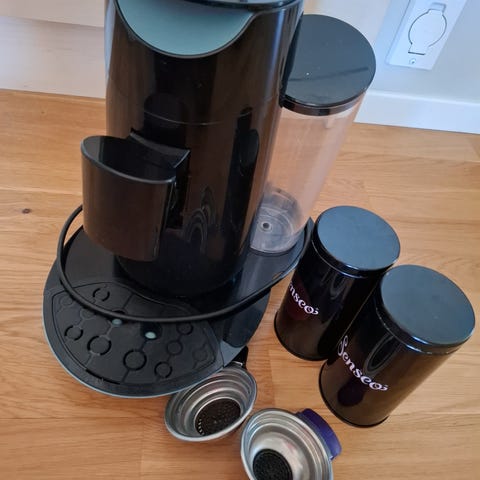 Saeco Intelia kaffemaskin i svart farge. Maskinen har flere funksjoner for brygging av kaffe og innebygget steamarm for melkeskumming. Passer til bruk i hjemmet eller mindre kontorer.