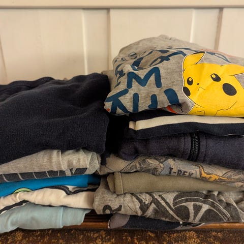 Klespakke gutt str 6 år. To bukser i str 122, men de oppleves som smale og ble brukt sammen med str 116 klærne. Sonic genser 122/128 har fått noen runder i trommel så liten i størrelsen.