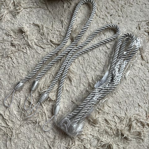 Ett par skjolder nederst. Se bilde . Synes svært lite når de henger oppe. Gardinen trenger en fresh siden de har ligget lenge til oppbevaring- kan godt hende skjoldene går bort da.