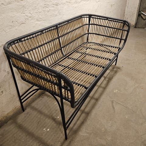Sofa og tilførende stol gis bort mot henting. Bærer preg av å ha stått ute.