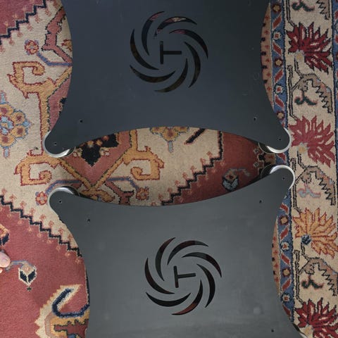 Vert i bruk i et par år, merke etter maling på innmat ( festeplaten ). Ellers er den strøken.