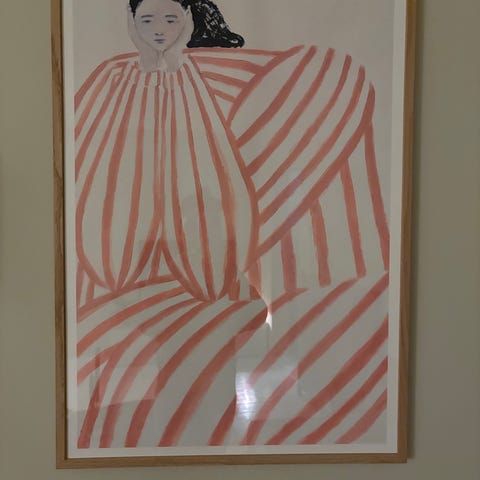 Selger plakat av Sofia Lind (waiting) i størrelsen 100 x 70 cm. Ramme i eik følger med. Ingen bruksmerker. Selges grunnet flytting.