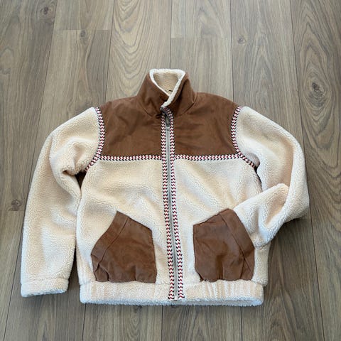Selger en H&M teddyjakke i str. S, veldig lite brukt. Jakken er ikke foret, så egner seg best til bruk om sensommer/tidlig vår.