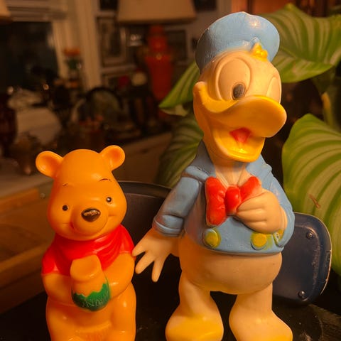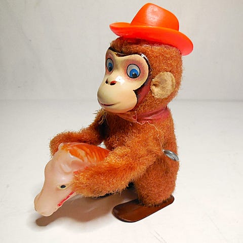 Vintage mekanisk ape og gås leketøy